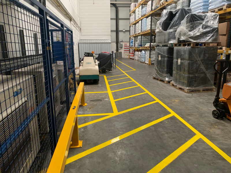 One of the easiest and most cost-effective ways of improving the safety of any warehouse is to use warehouse line markings to create clearly designated pedestrian walkways. Well thought-out pedestrian walkway markings make it clear to people where the safest place to walk is and reduce the chance of collision accidents occurring.